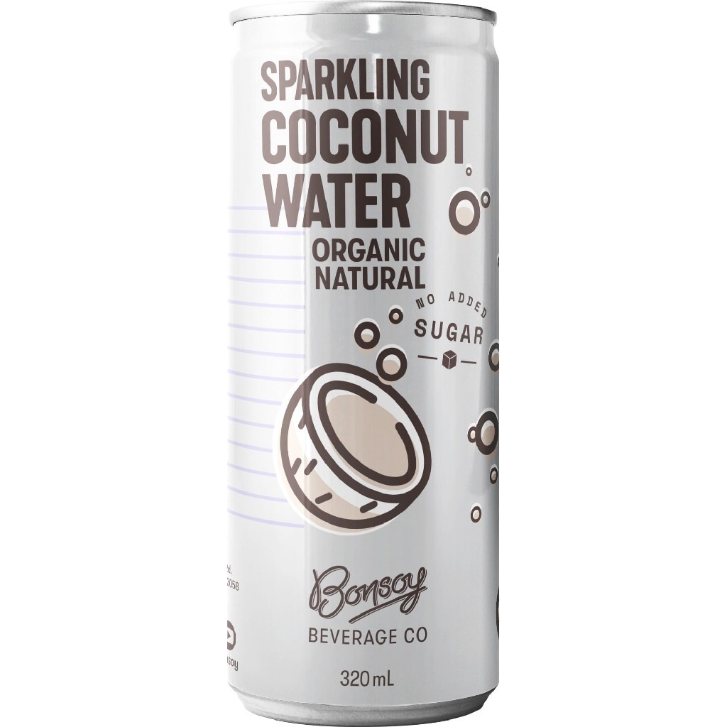 BONSOY – SPARKLING COCONUT WATER- ORGANIC NATURAL – CANS 320MLS – 12PK (CTN/12)