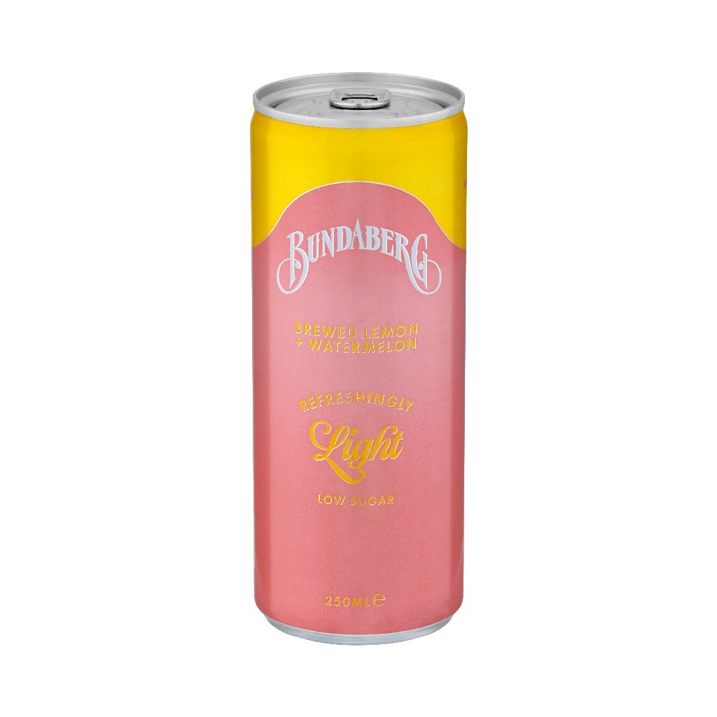 BUNDABERG – REFRESHINGLY LIGHT – LEMON + WATERMELON – 250 MLS – 24PK (CTN/24)